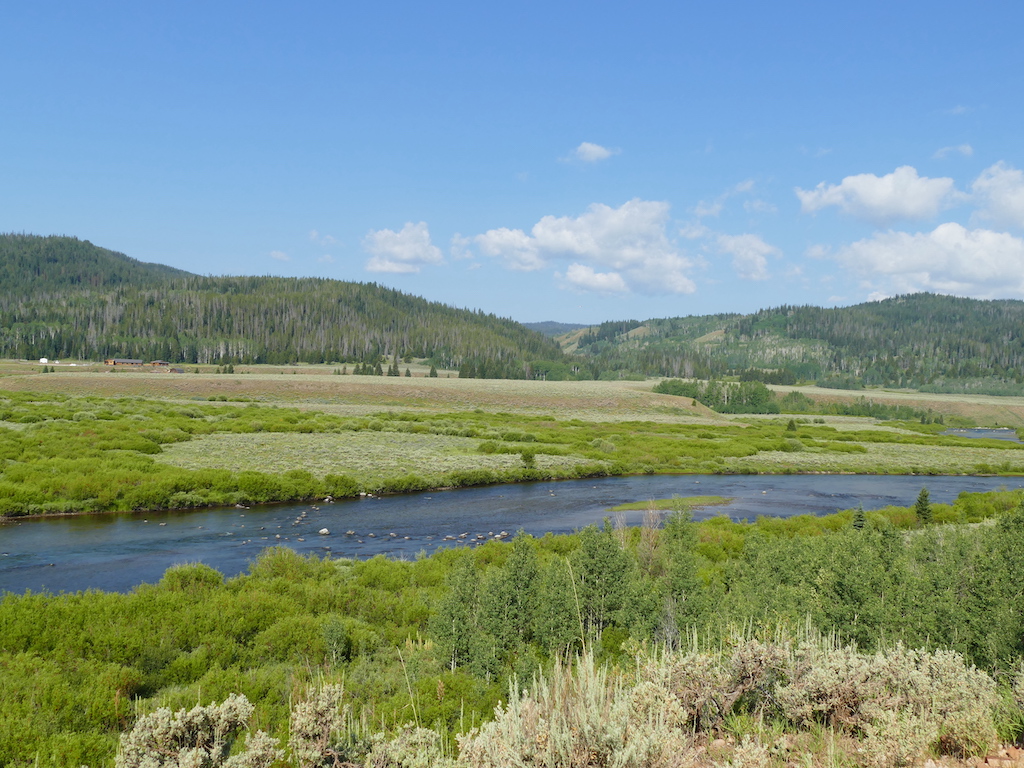 Dorothy thought we were going to stay at the RV park in Rawlins and was starting to register when I walked in. We were both tired but I wanted to get into the cool mountain air. So we filled the fresh water tank and headed 1.5 hours south. We were both too tired to be driving safely. My bad.